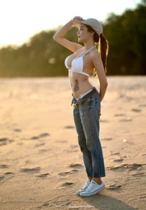แต่ว่าชุดก็ร้อนแรงไม่แพ้แดดเช่นกัน บราสีแดงที่แทบจะอุ้มเต้าไว้ไม่มิด มาคู่กับบิกินีสีเดียวกันที่อวดแก้มก้นอย่างเนียนทีเดียว แถมยังมีเข้าวินให้เราได้ติดตากันอีกต่างหากเซ็ตนี้ดีทั้งนางแบบ และช่างภาพกันเลย   เซ็ตนี้เปลี่ยนบรรยากาศหน่อย มาในชุดชั้นในกันบ้าง คราวนี้เป็นชุดชั้นในแบบเต็มตัว ลายลูกไม้ผ้าโปร่งซีทรู ที่บอกเลยว่าเซ็กซี่มาก ไม่เท่านั้นยังมีผ้าคลุมสีเดียวกันเข้าชุดอีกด้วย เป็นอีกภาพที่น้องแสดงให้เห็นแรงดึงดูดเสน่ห์ทางเพศของเธอที่ล้นเหลือมากกว่าใคร เซ็ตนี้ก็เด็ดแซ่บซี้ด แม้ว่าจะเป็นภาพแบบธรรมดาแต่อย่างอื่นไม่ธรรมดาเลย น้องมาในเสื้อเชิ้ตตัวใหญ่ พร้อมแหวกอกเสื้ออวดเนินอกให้เห็นกะจะคาตาว่าของดีใหญ่จริง พร้อมกับบิกินีสีดำเว้าขาสูงที่เซ็กซี่มาก แม้ว่าจะแต่งมาแค่นี้แต่สายตาท่าทาง การโพสต์ทำให้เธอดูเซ็กซี่แบบเราต้องยอมสยบต่อเธอเลยเหมือนกัน