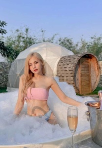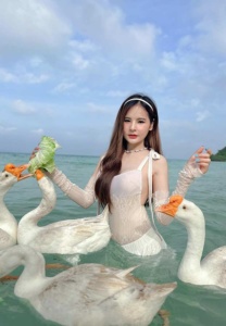 เธอมาในชุดทูพีชสีรุ้งที่จัดว่าเด็ด อวดสัดส่วนของเธอได้เนียนตามาก แถมยังโพสต์ท่าถ่ายกับน้องช้างทั้งสองตัวได้แบบไม่เคอะเขินแต่อย่างใด เซ็ตนี้อาจจะไม่เซ็กซี่แต่สวย เป็นชุดเรียบร้อยชุดเดรสกระโปรงยาวสีฟ้า ที่บอกเลยว่าสวย ไม่ร้อน เธอใส่เข้าไปถ่ายในวัด ไม่เซ็กซี่เท่าไร แต่เราชอบความสวยเก๋ของชุดที่มันงานดีมาก มาที่งานเซ็กซี่กันบ้างกับชุดว่ายน้ำที่บอกเลยว่าเด็ดจริง